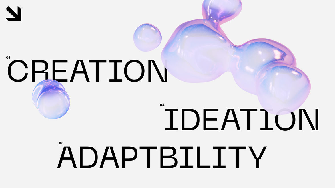 We took cues from luxury brands, integrating flat colors with depth, bold palettes, and refined layouts. Metallic forms symbolize creativity and adaptability, while geometric structures and clean motion reflect transformation and growth.